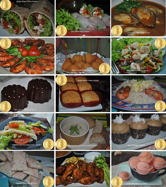 Diam tak diam sudah masuk bulan ketiga tahun 2011, terasa baru sahaja menyambut tahun baru. Apa pun untuk bulan Februari 2011 PATYKITCHEN telah membuat 55 entries, 1 mengenai penggumuman PATYSKITCHEN 1ST GIVEAWAY PROJECT dan 54 resipi yang telah dibuat dan di "experiment oleh PATYSKITCHEN. Bagi memudahkan semua saya telah membuat ringkasan melalui gambar entry-entry saya bagi bulan February. Rujukan untuk setiap entry boleh dilihat di BLOG ARCHIVE. Saya harap anda semua memdapat mafaat dari blog ini dan oleh kerana matlamat kita adalah untuk berkongsi idea, pengalaman dan resipi-resipi baru, komen-komen dan feedback adalah penting bagi peningkatan diri. So be free to leave your comments.