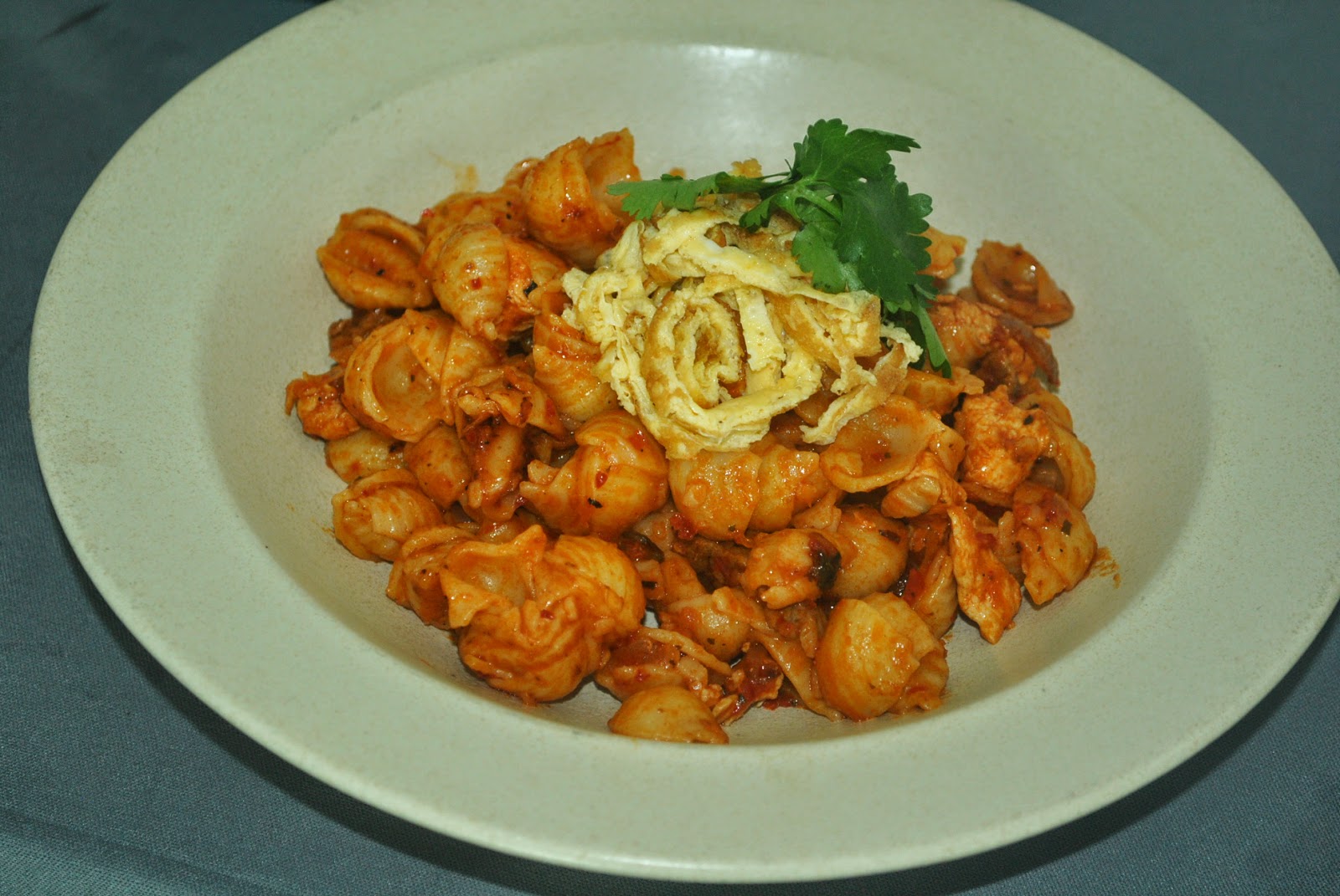 Inilah dia makanan Italian yang telah di Melayukan..ha..ha..saya goreng pasta shell ini macam kita goreng mee dan bihun. Tetapi masih mengekalkan ke "Italianannya" dengan memasukkan buah tomato segar, tomato sos..dan bay leaf. Memang menakjubkan sedap dan sesuai dengan tekak Melayu. Buat sedikit telur dadar hiris nipis dan tabur di atasnya...Insyallah anak-anak di rumah pasti suka. Rasa tu bolehlah pandai-pandai adjust. Boleh guna ayam atau pun daging.